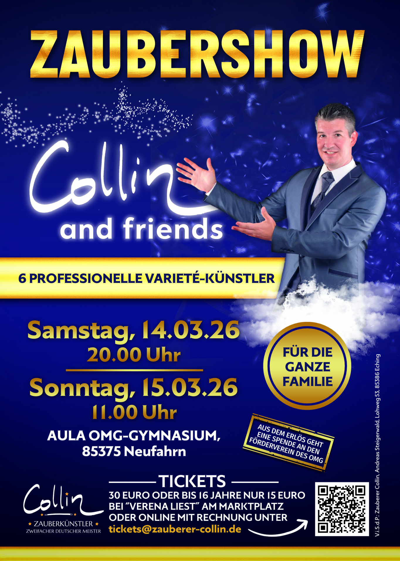 Collin organisiert seit Jahren auch gemeinsame Zaubershows mit anderen Zauberern aus München unter dem Motto „Collin and Friends“ in Neufahrn bei Freising, für die Sie Tickets kaufen können.